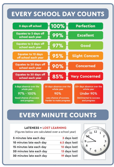 We expect all our families to ensure their children attend school regularly and arrive on time.